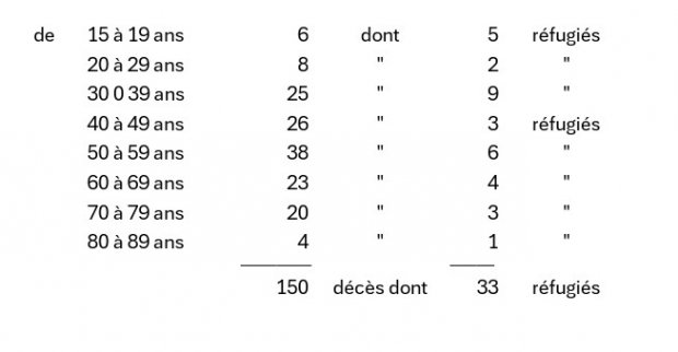 Le tableau ci-dessous répartit les décès par âge [2] :